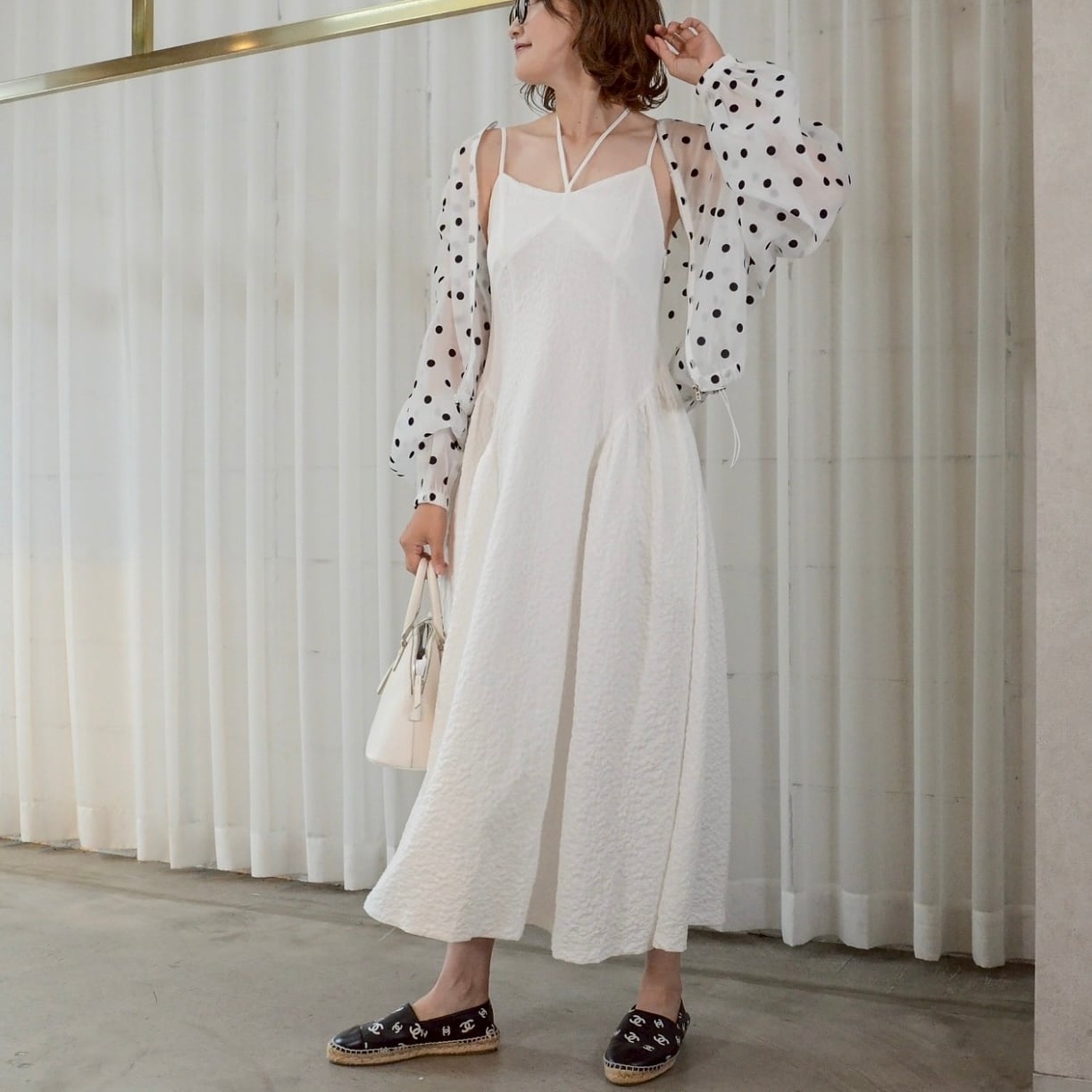 フロッキードットシースルーブルゾン/WH