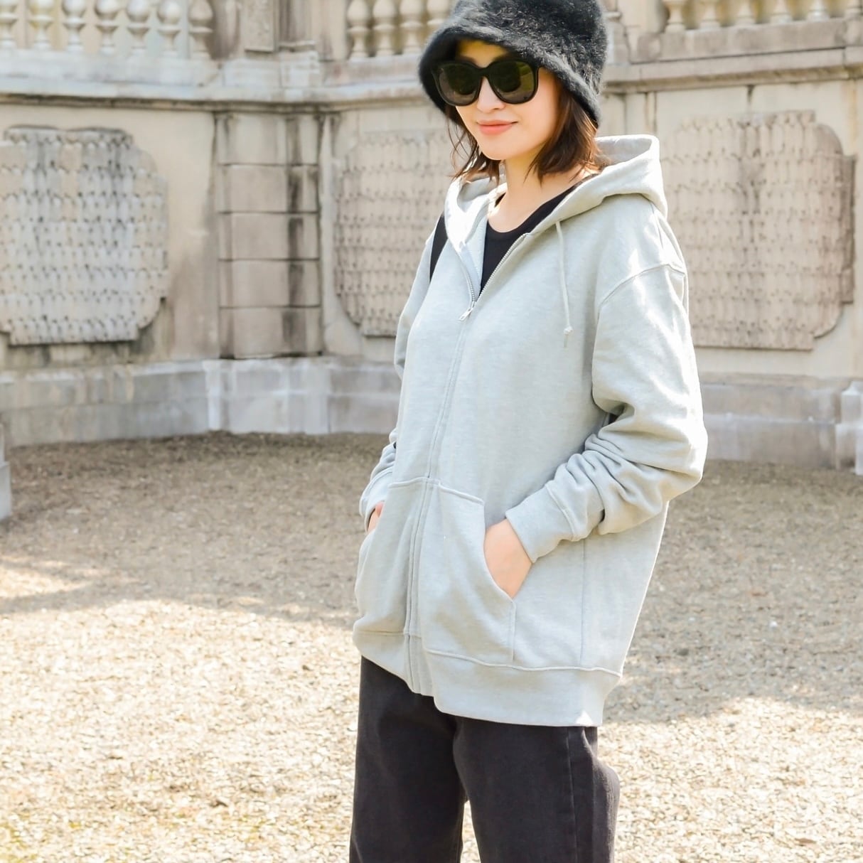かなりゆったりめのシルエットなので、ショート丈のボトムやワンピースに合わせるのもオススメ。